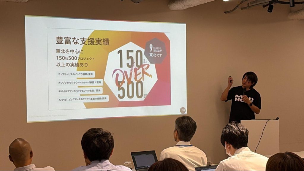 「世界中の顔を知らない100万人よりも、自分たちの身近な100人をクラウドで幸せにする」を経営理念に掲げ、主に東北地方のお客様に対してクラウド化やデジタルトランスフォーメーション (DX) 支援を行っています。