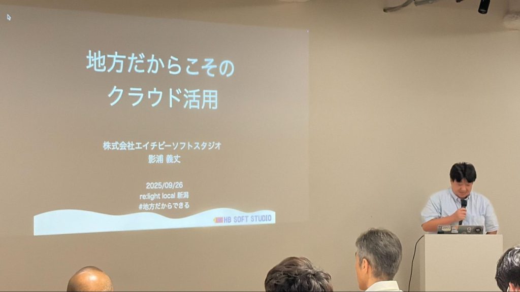 2025年9月26日、当社と株式会社エイチビーソフトスタジオ、株式会社Fusic、株式会社クエイル、株式会社グローバルネットコアの5社で構成される、地方のクラウド活用推進を加速する企業間コミュニティ「re:light local」主催のイベントを、新潟県新潟市「Sea Point x MOYORe: ホール」で開催しました。