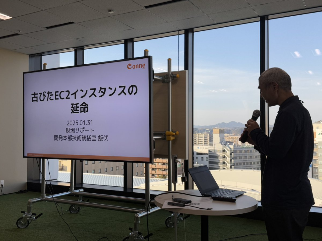 株式会社現場サポート 飯伏 政樹 様からは古びた EC2 とおっしゃるように10年以上稼働する EC2 をいかにメンテナンスして長く使えるようにするかをお話しいただきました。