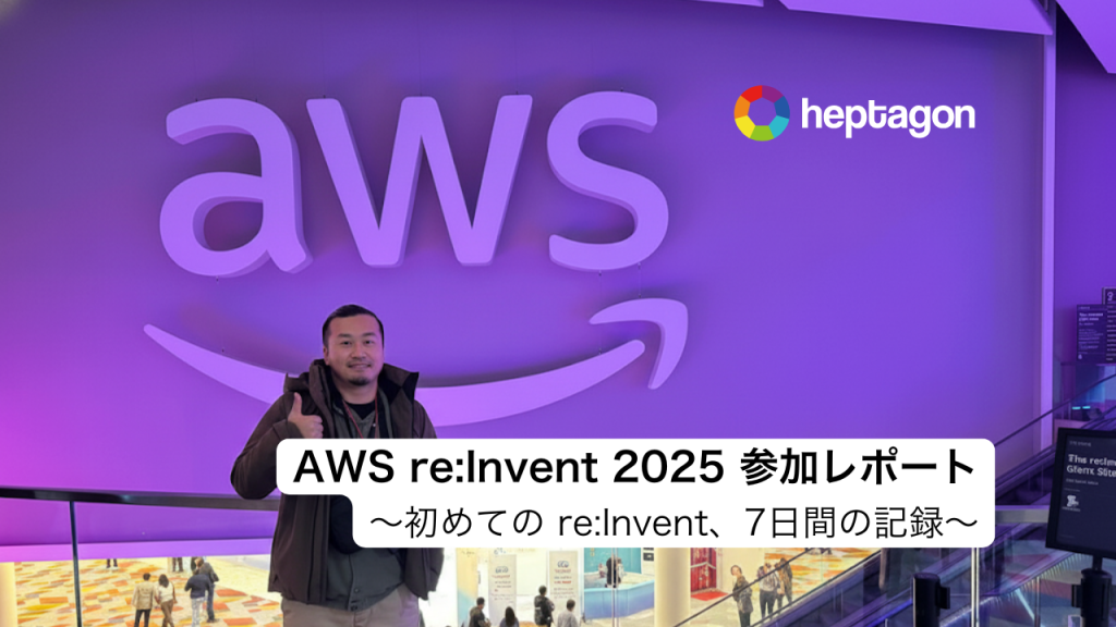 ヘプタゴンでは、AWS 認定資格のプロフェッショナルレベルを取得した社員に re:Invent 参加の機会を提供しており、私もこの制度を利用して参加することになりました。今回は、AWS HERO として招待を受けた代表の立花さんと三浦さん、3名での参加となり、経験豊富なお二人と一緒に行けたことが、この7日間を充実したものにしてくれました。