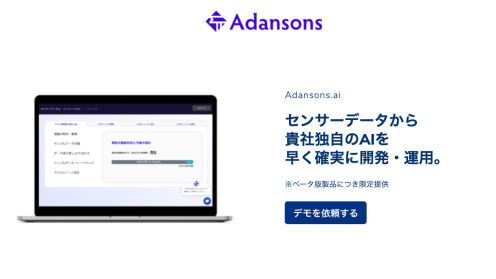 株式会社 Adansons 様は、国立大学法人 東北大学発の AI スタートアップ企業です。 独自の新理論 AI「参照系 AI」の研究開発および、音声・振動/生体データ/映像などの時系列データ解析による異常検知解析サービスや、バイタルデータ解析による健康状態分析サービスの提供を行っています。