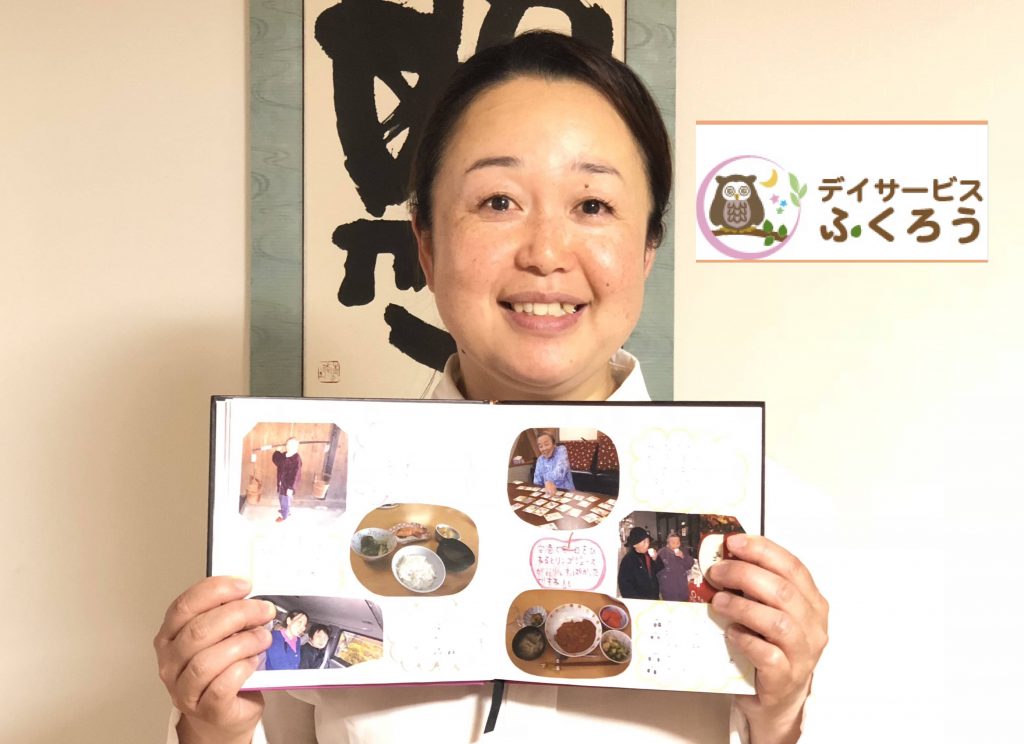 青森県三沢市にあるデイサービスふくろう様では、毎月施設の利用者様一人ひとりに写真入りのメッセージカードやアルバムを作成してお渡ししています。日常業務を行いながら、撮りためた数百枚の写真から、利用者を特定し、仕分けを行うのは大変な作業でした。